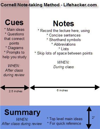 James的老師請他用「Cornell note-taking」的方式做上課筆記(Cornell Method),它長得這個樣: